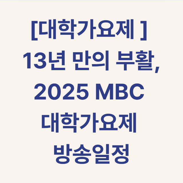 2025 MBC 대학가요제가 13년 만에 부활합니다. 방송 일정, 본선 라인업, 초청 가수, 심사위원 등 공식 정보를 한눈에 정리했습니다. 청춘의 음악을 느껴보세요!